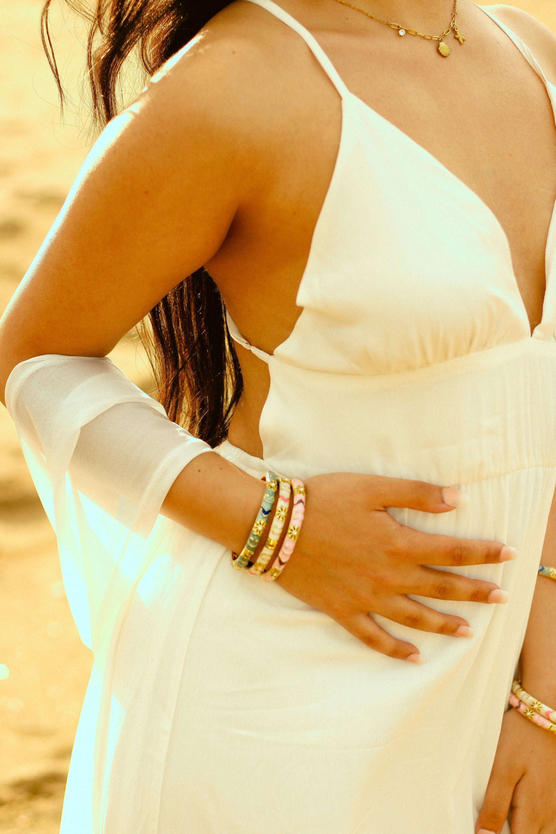 Please note: The Noor bangles are enamel-coated. To keep them looking their best, avoid using the polishing cloth included with other pieces. Simply wipe gently with a soft, dry cloth.